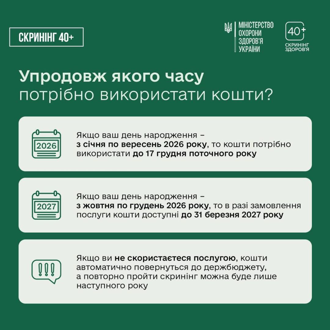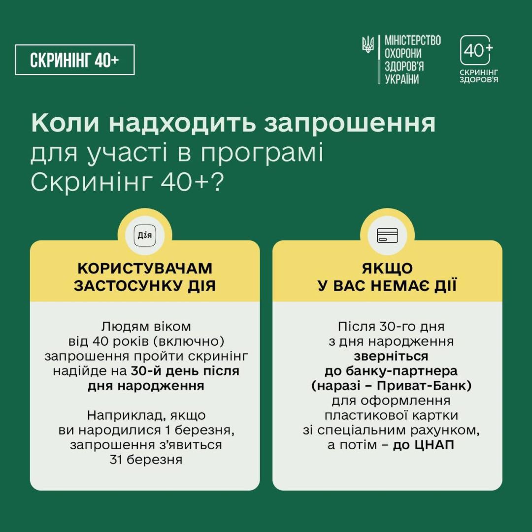🔗Детальну інформацію про програму Скринінг здоров’я 40+ та відповіді на найпоширеніші запитання знайдете за посиланням: screening.moz.gov.ua.